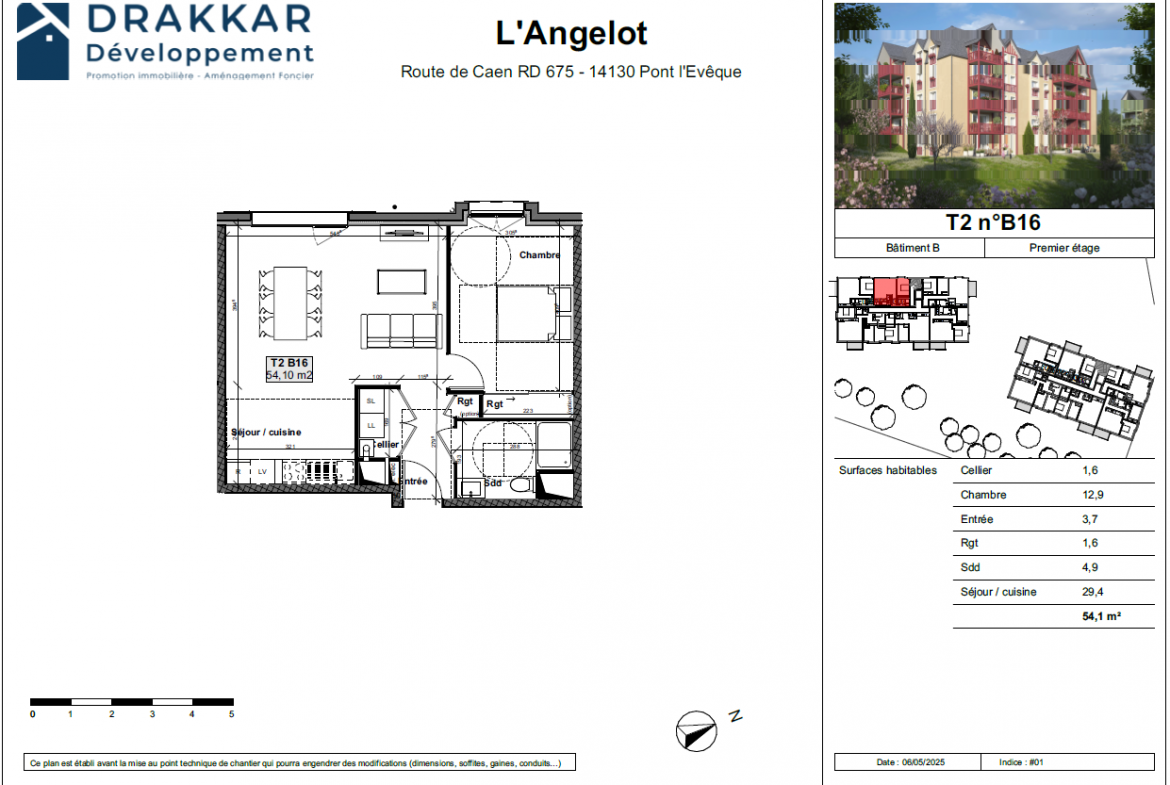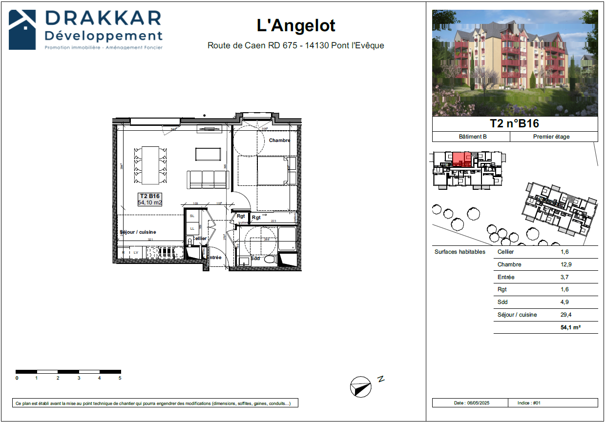 Jérôme Mesnildrey Immobilier vous propose ce T2 neuf de 54 m² au 1er étage avec ascenseur de la résidence L’Angelot, un programme moderne au style néo-normand, situé à deux pas du centre historique et à 10 minutes de Deauville.