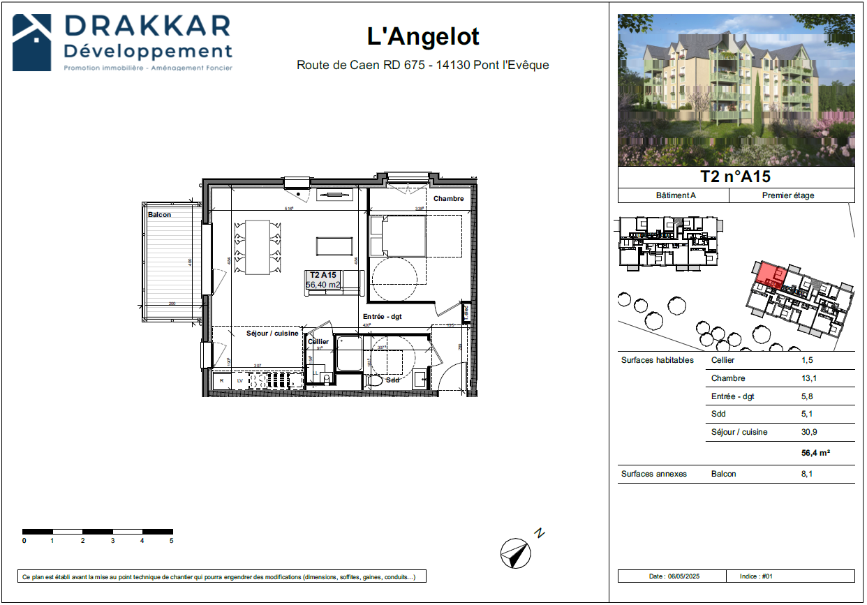 Jérôme Mesnildrey Immobilier vous propose ce T2 neuf de 56 m² au 1er étage avec ascenseur de la résidence L’Angelot, un programme moderne au style néo-normand, situé à deux pas du centre historique et à 10 minutes de Deauville.